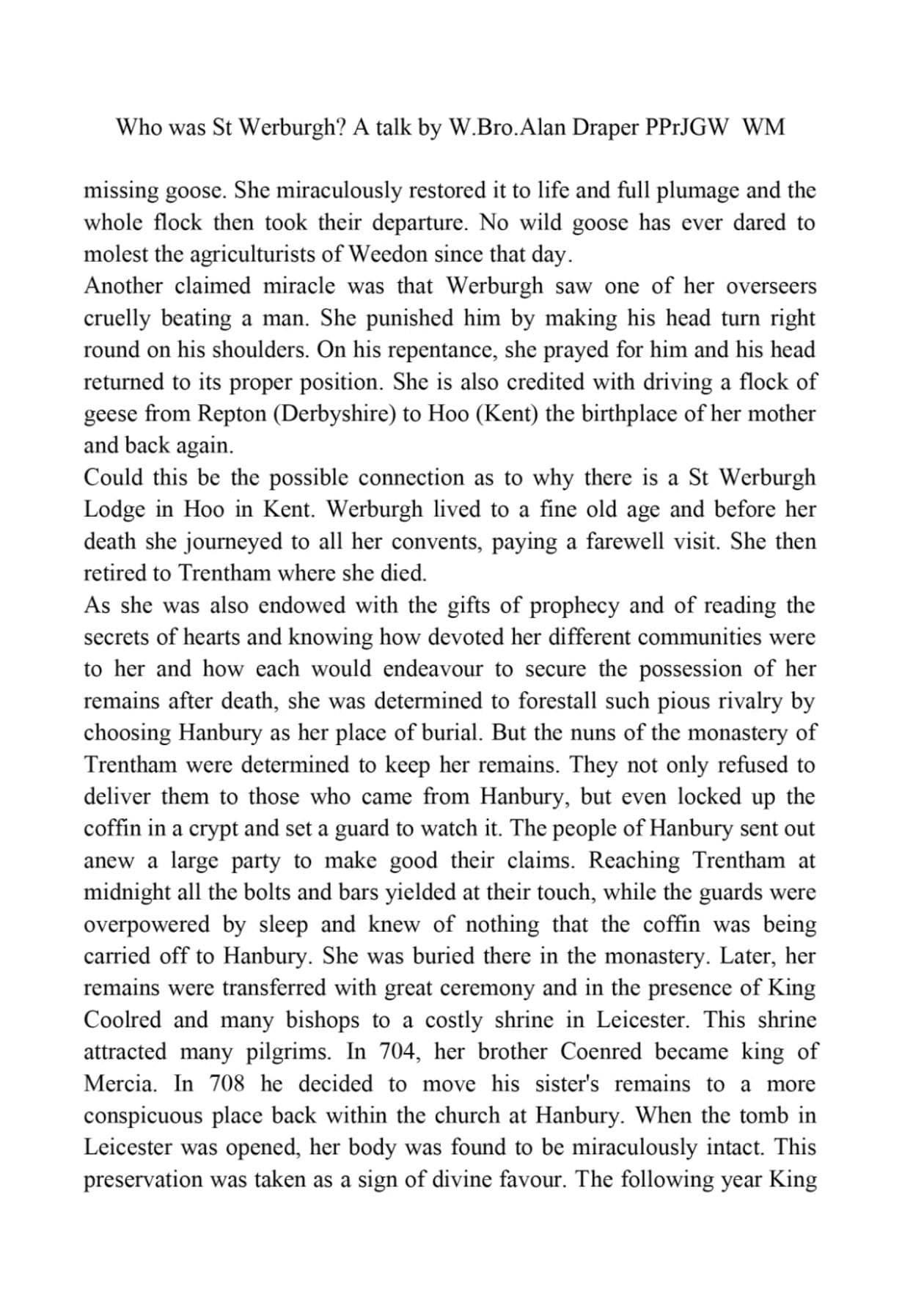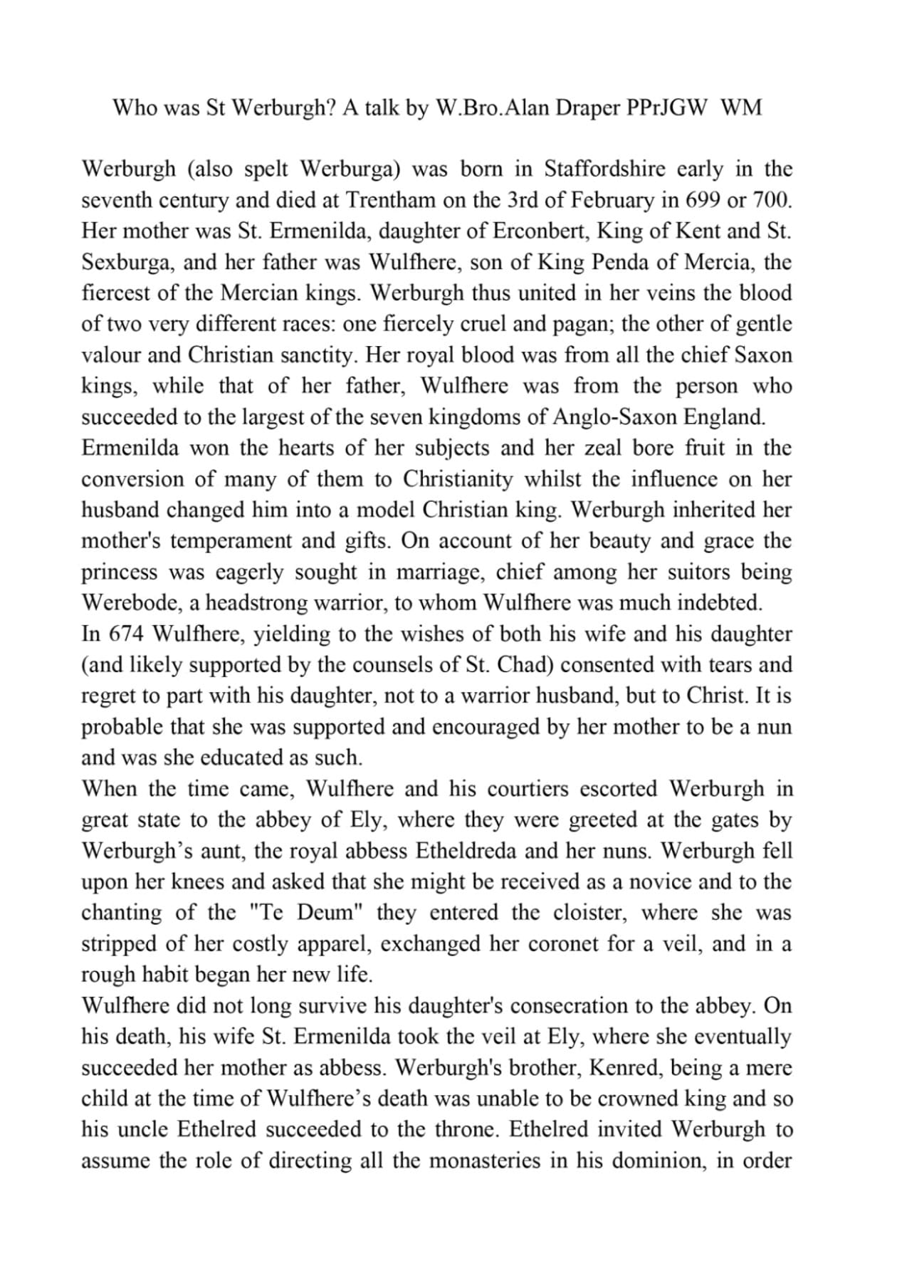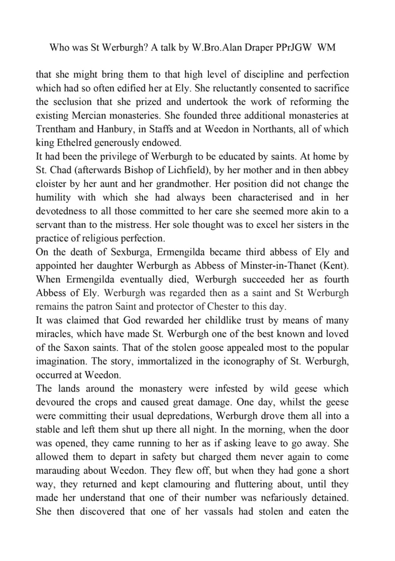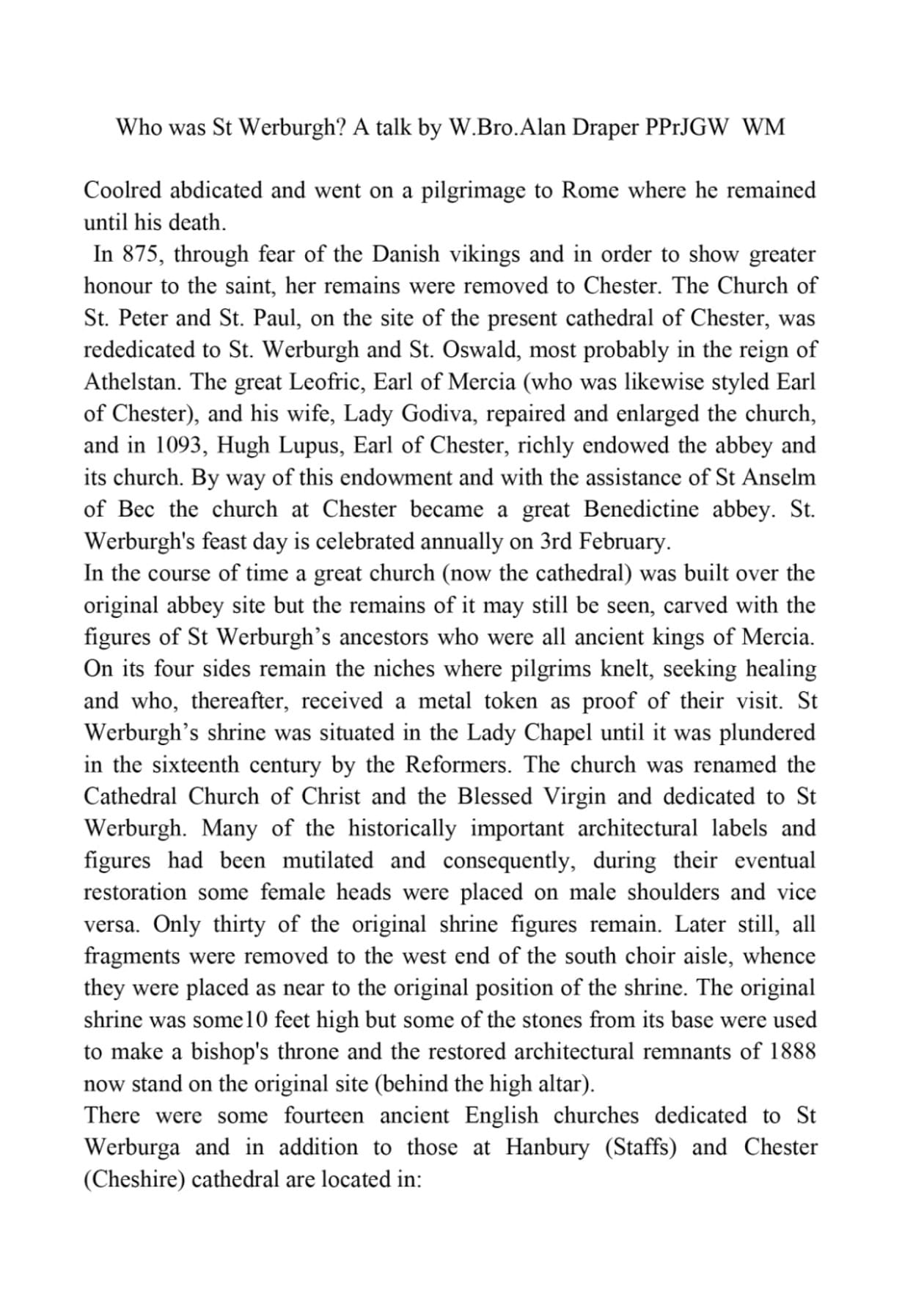 St Werburga Lodge 4147